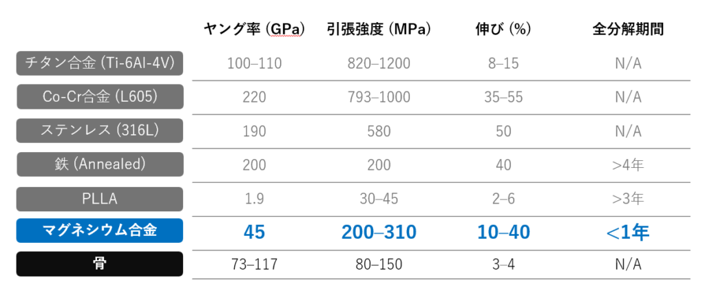 生体吸収性材料の中でもマグネシウムは、以下の利点により優れています。